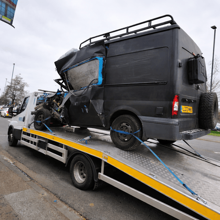Professional collision recovery with secure vehicle handling and minimal disruption to the scene.